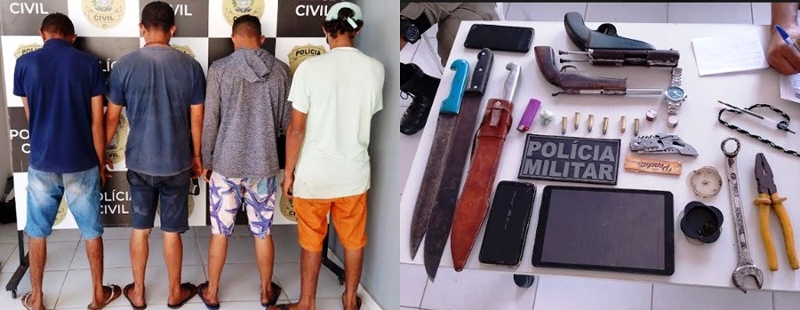 De posse das informações, a guarnição foi destacada até o local supra citado. Ocasião em que foi feita incursão e aprendidas duas armas caseiras e munições e feita a condução de quatro acusados ate o distrito policial de plantão para os procedimentos cabíveis necessários.