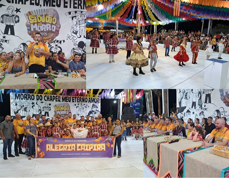 A primeira noite do São João do Morro 2025 foi incrível. O evento começou na sexta-feira, 11 de julho, na Praça de Eventos, com uma programação repleta de apresentações culturais e shows.. O prefeito Erikson Fenelon, a Primeira-Dama Jamille Marinho, vereadores e secretários municipais compareceram ao evento, que teve como tema “Forró e Tradição”.